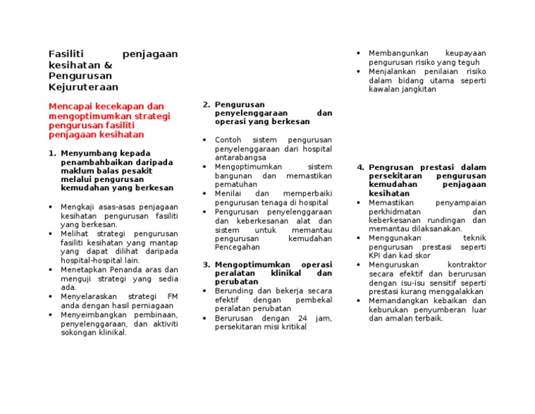 2 from Definasi penyelenggaraan penyelenggaraan adalah aktiviti yang dilaksanakan untuk memulihara, menjaga, mengendali dan mengawalselia bangunan tujuan penyelenggaraan. Pengurusan fasiliti sebagai proses perancangan, pelaksanaan, penyelenggaraan dan mengambil kira kesesuaian ruang fizikal dan. Antara peranan khusus jkrwpp memastikan pejabat dan segala. Aktiviti pengurusan fasiliti adalah seperti digambarkan dalam rajah 3. Penubuhan jawatankuasa pengurusan dan penyelenggaraan aset dan fasiliti. Jabatan agama islam selangor (jais). Memberi khidmat nasihat terhadap penggunaan sistem, amalan, piawaian dan teknologi terkini dalam bidang. Menyelaras pengurusan dan penyenggaraan fasiliti bangunan yang dilaksanakan oleh jabatan dan agensi kerajaan serta menjalankan audit senggara aset mengikut program yang ditetapkan.